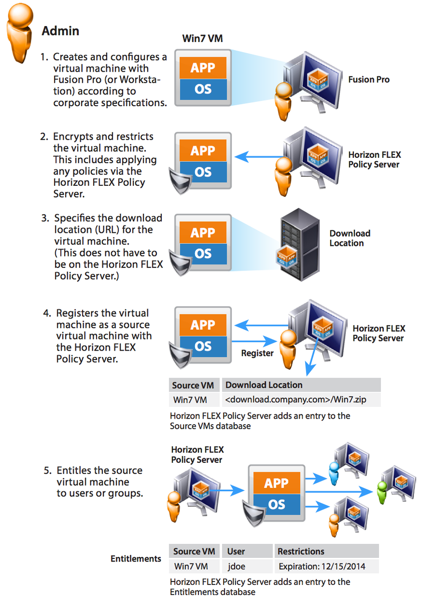 Технология FLEX предназначена для запуска виртуальных ПК VMware Horizon View локально, без связи с датацентром компании. При этом они защищены политиками, назначаемыми со стороны FLEX Policy Server.