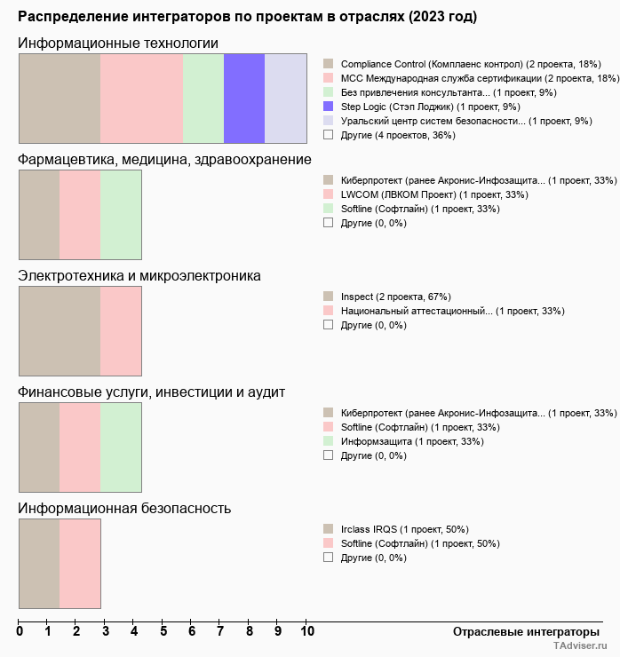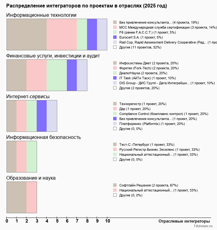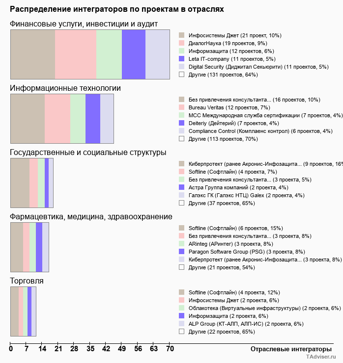Отраслевое распределение по количеству проектов внедрений