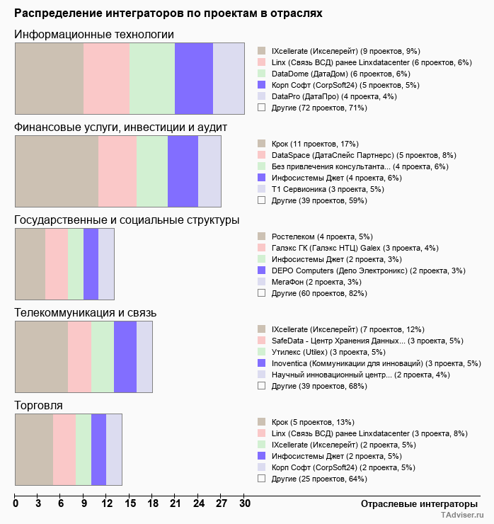 По оценкам TAdviser, российский рынок услуг на базе коммерческих дата-центров (кЦОД) по итогам 2015 года в денежном выражении достиг 13 млрд рублей, рост к 2014 году составил порядка 15%.