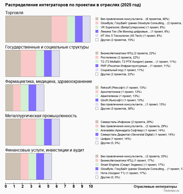 | Отрасль | Подрядчиков | Проектов |
