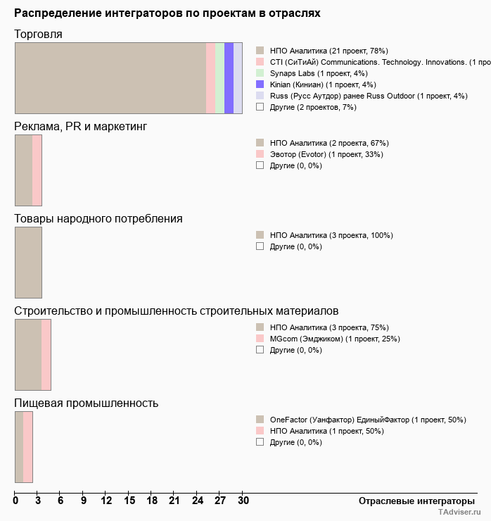 Отраслевое распределение по количеству проектов внедрений