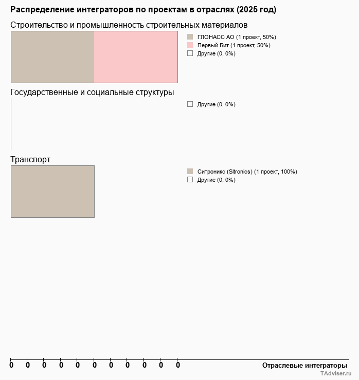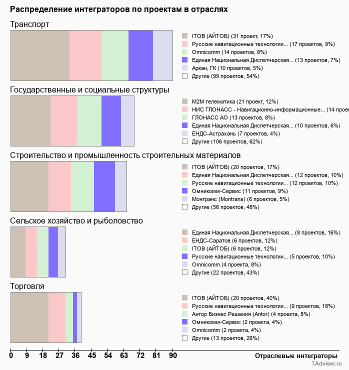 Отраслевое распределение по количеству проектов внедрений