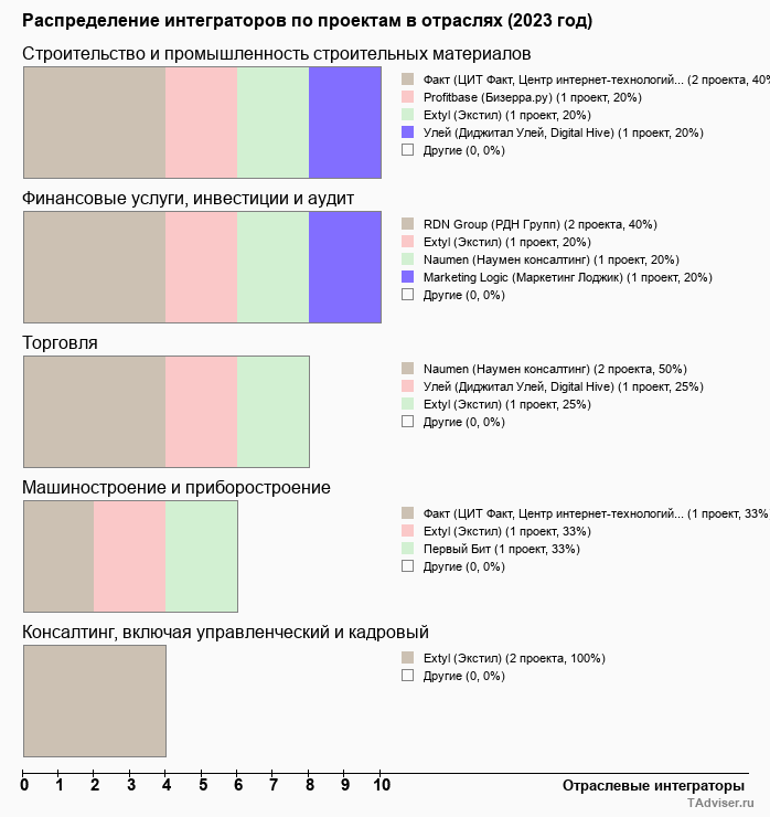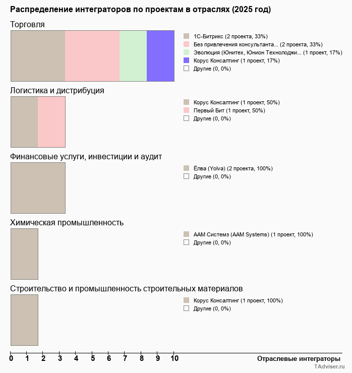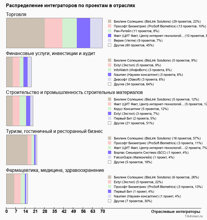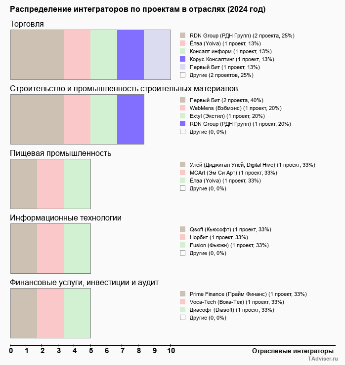 Отраслевое распределение по количеству проектов внедрений